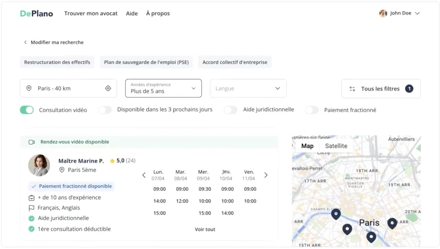 DePlano m'a permis de trouver un avocat adapté à mon besoin rapidement, sans friction. J'ai pu addresser ma problématique d'entrepreneur rapidement et trouver une solution dans les moindres delais.